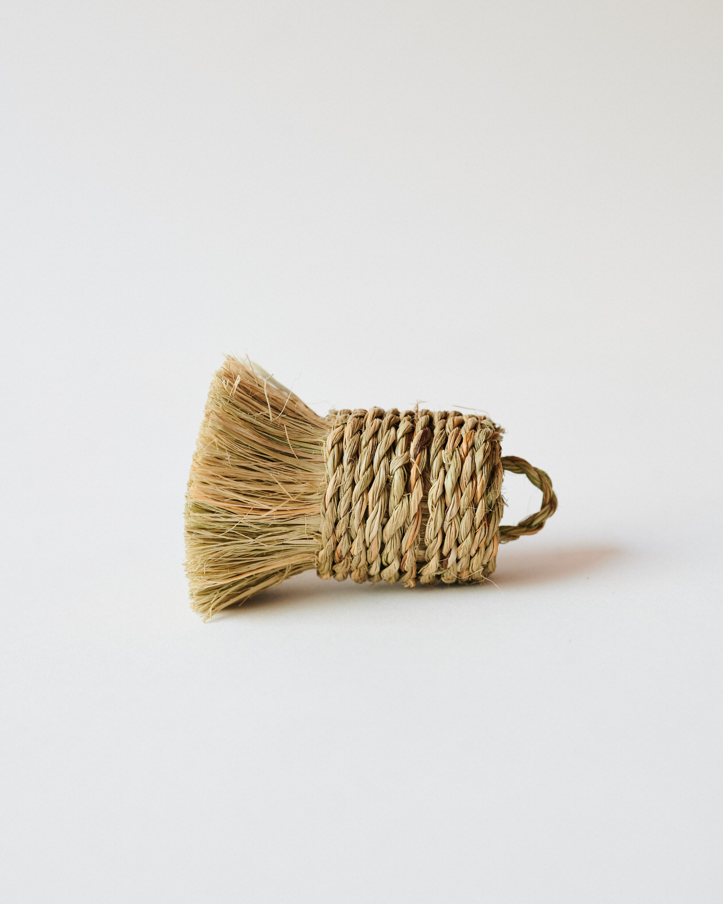 A series of friendly household brushes Isi brushes explores the construction of the traditional esparto table brush, playing with proportion and scale. Using the hairs of the brush and the wrap of the braided handle as graphic elements, each brush has character: a grandparent, child, or household pet.